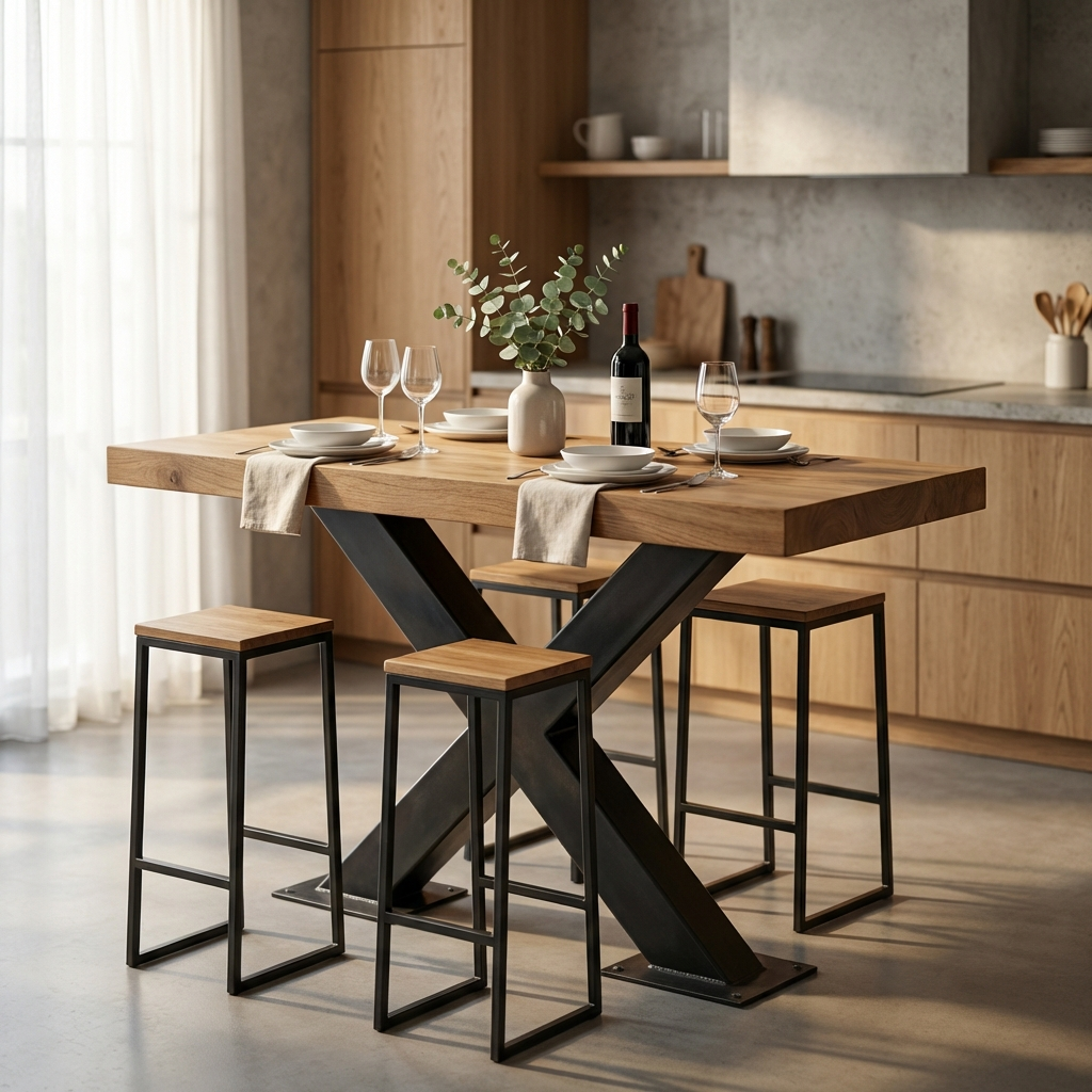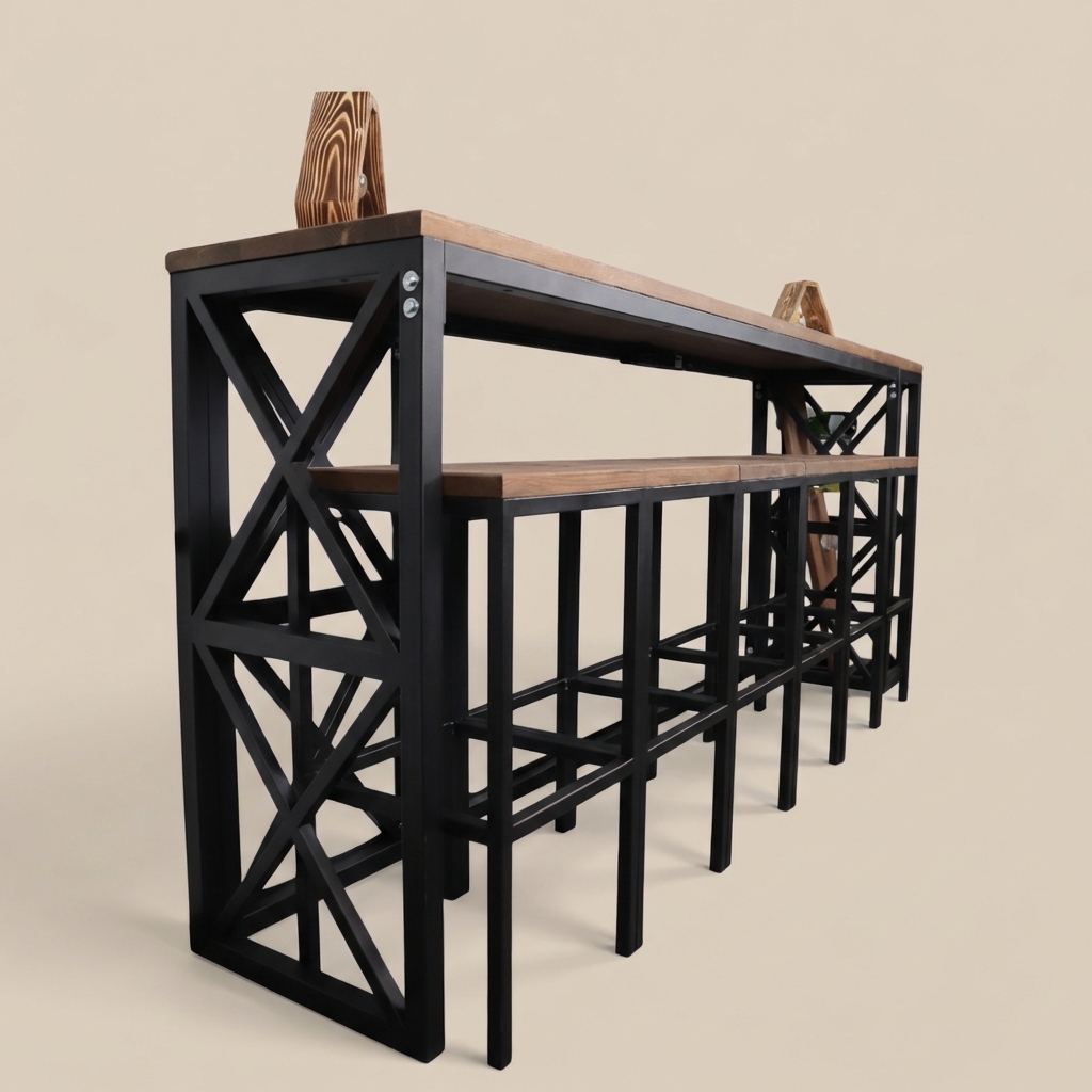 Стол «Бруно» изготовлен из металлического каркаса и натурального дерева. Металлические детали качественно сварены и зачищены, швы визуально не просматриваются. Каркас покрыт порошковой краской повышенной прочности, устойчивой к внешнему воздействию. Дерево столешницы не имеет внешних повреждений, выбитых сучков и вмятин на лицевой поверхности. Столешница тщательно зачищена и имеет гладкую и ровную поверхность. Стол имеет жесткую неподвижную конструкцию.