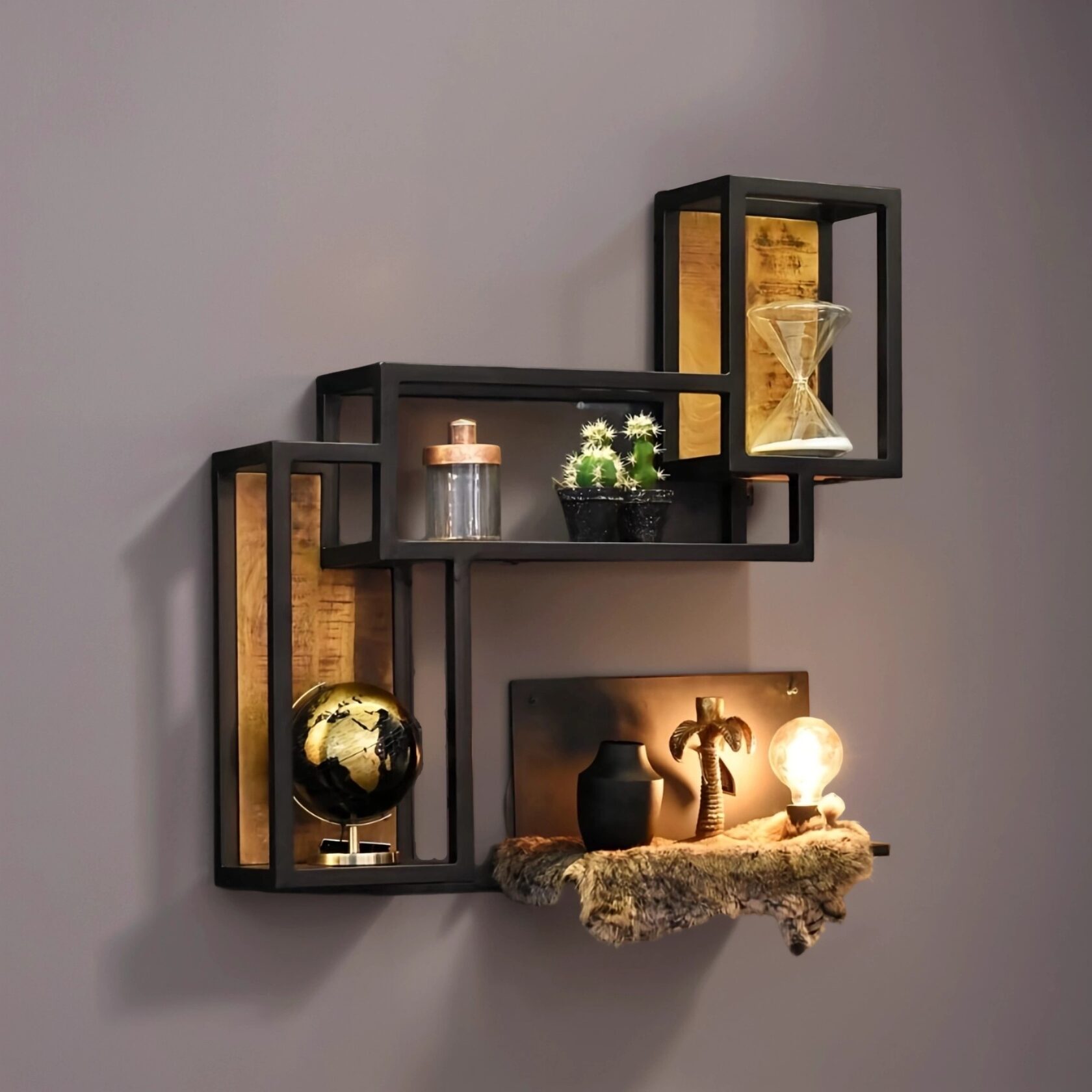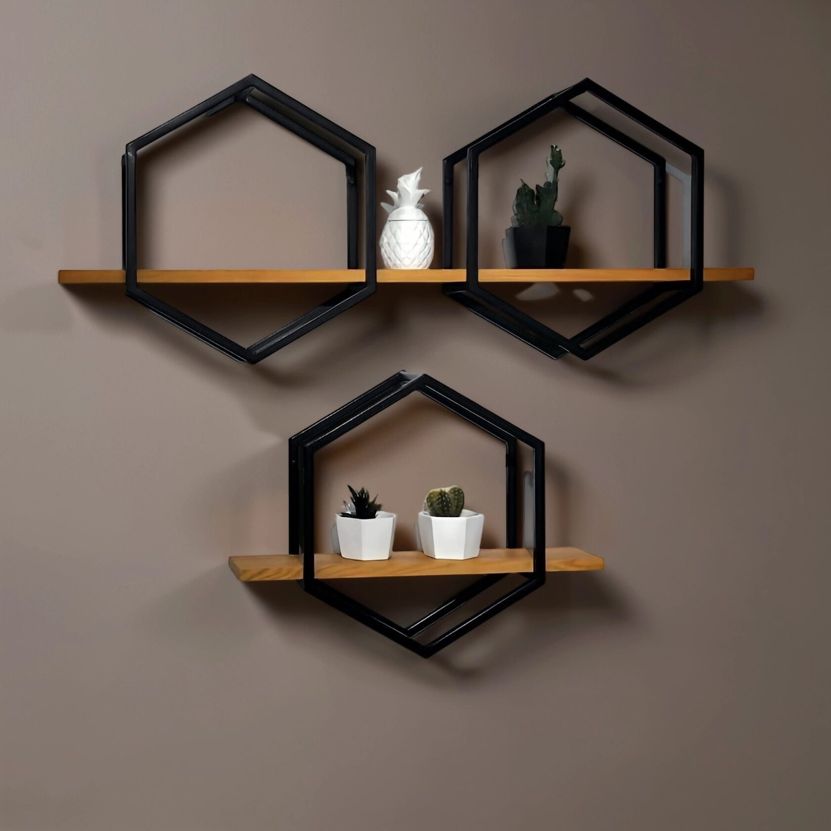 Полка «Гексагон» изготовлена из металлического каркаса и натурального дерева. Детали качественно сварены и зачищены, швы визуально не просматриваются. Каркас покрыт порошковой краской повышенной прочности, устойчивой к внешнему воздействию. Детали тщательно зачищены и имеют гладкую поверхность.