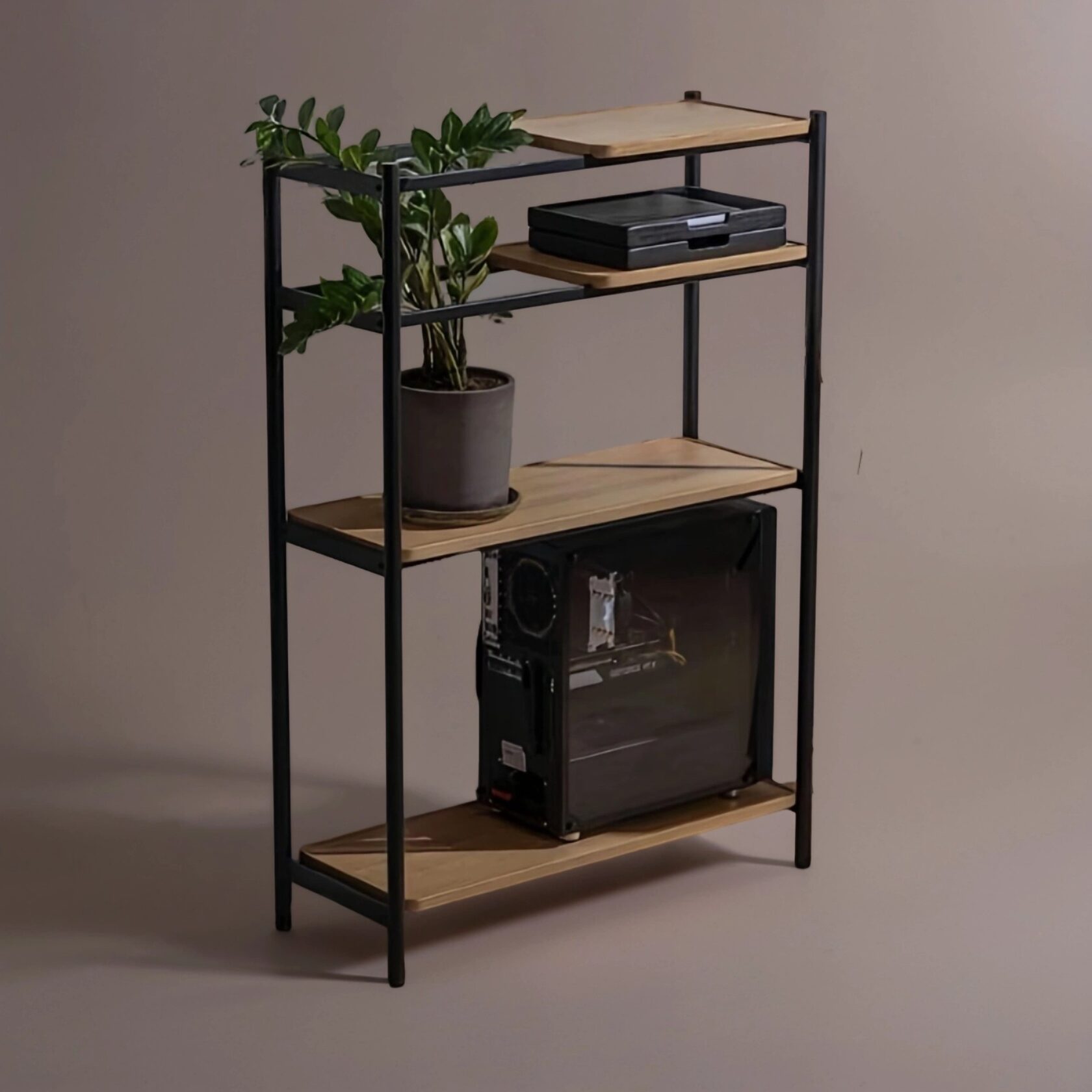 Стеллаж «Мини» изготовлен из металлического каркаса и натурального дерева. Детали качественно сварены и зачищены, швы визуально не просматриваются. Каркас покрыт порошковой краской повышенной прочности, устойчивой к внешнему воздействию. Детали тщательно зачищены и имеют гладкую поверхность.