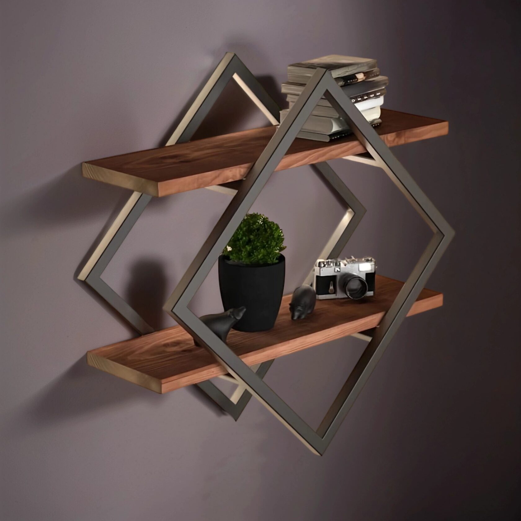 Полка «Ромб» изготовлена из металлического каркаса и натурального дерева. Детали качественно сварены и зачищены, швы визуально не просматриваются. Каркас покрыт порошковой краской повышенной прочности, устойчивой к внешнему воздействию. Детали тщательно зачищены и имеют гладкую поверхность.