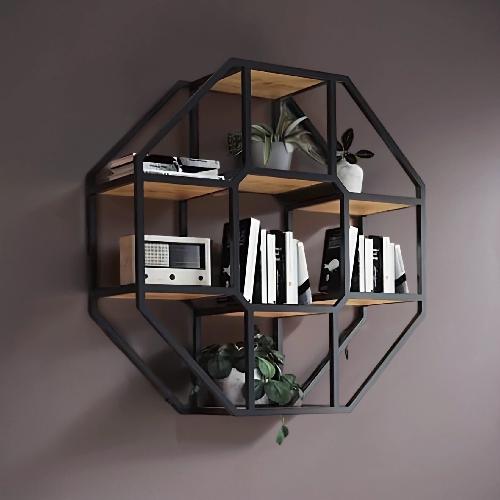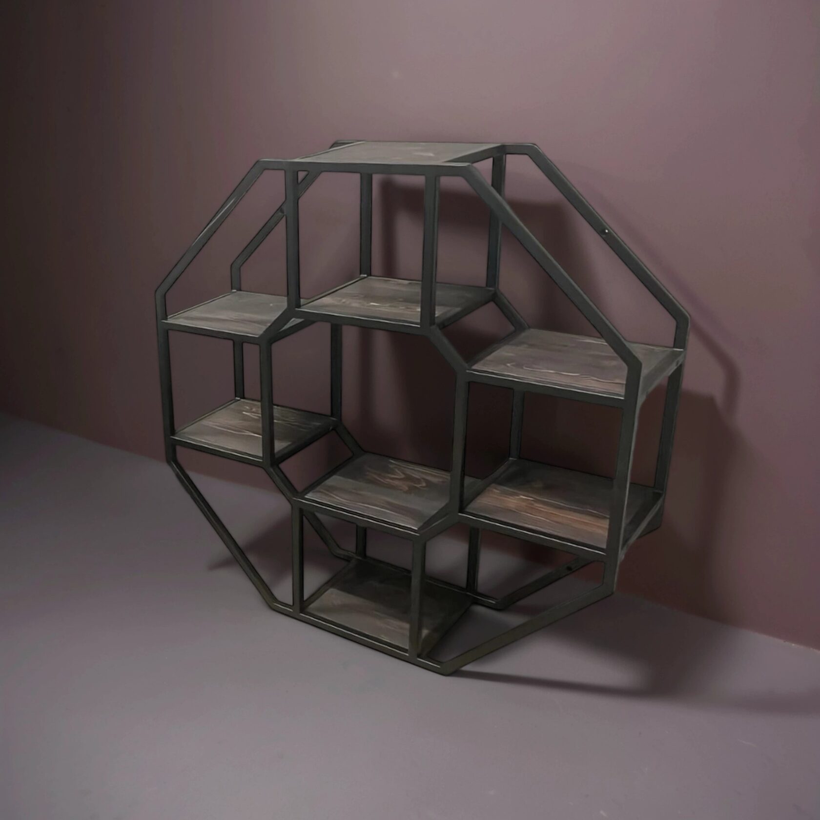 Полка «Октагон» изготовлена из металлического каркаса и натурального дерева. Детали качественно сварены и зачищены, швы визуально не просматриваются. Каркас покрыт порошковой краской повышенной прочности, устойчивой к внешнему воздействию. Детали тщательно зачищены и имеют гладкую поверхность.