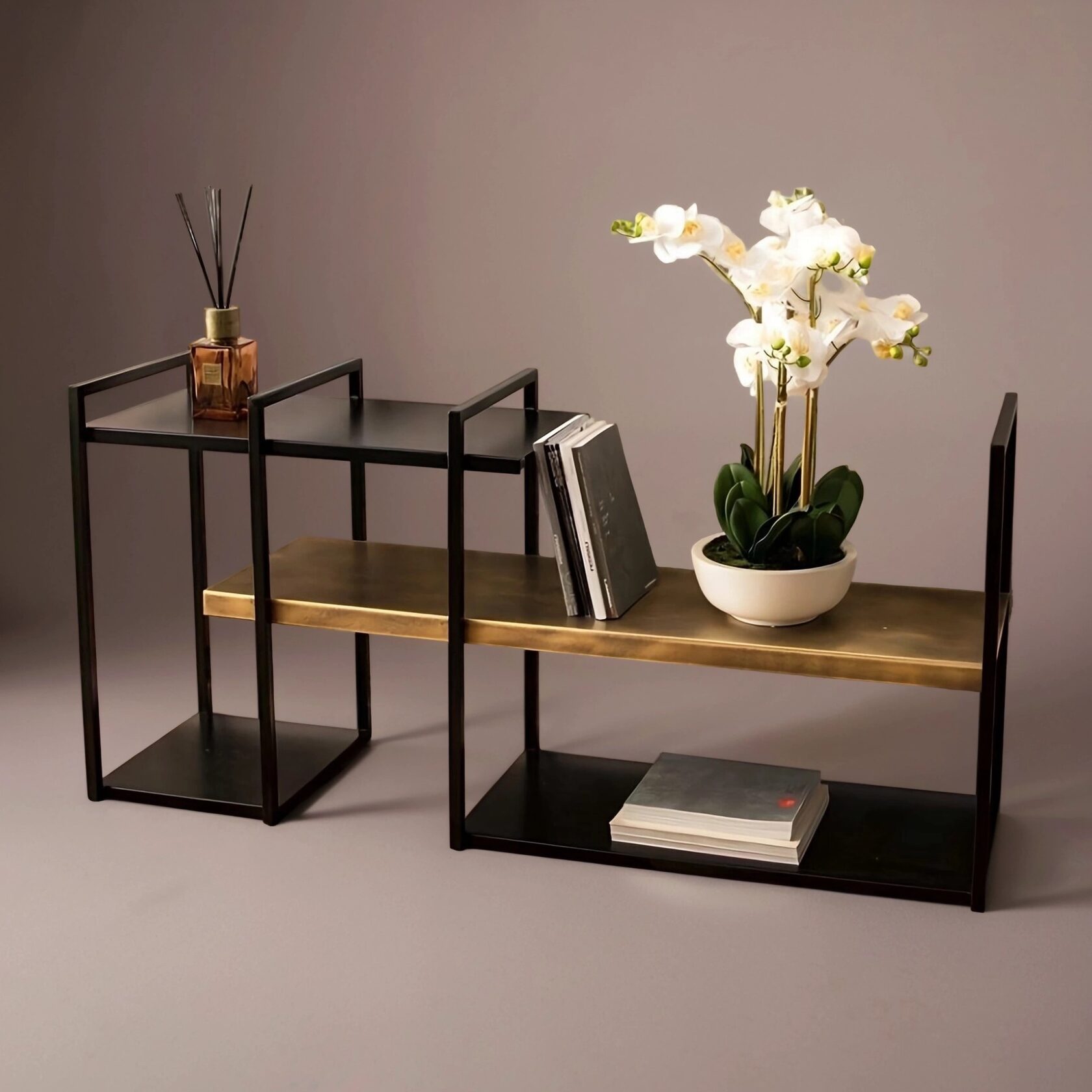 Стеллаж «Симметрия» изготовлен из металлического каркаса и натурального дерева. Детали качественно сварены и зачищены, швы визуально не просматриваются. Каркас покрыт порошковой краской повышенной прочности, устойчивой к внешнему воздействию. Детали тщательно зачищены и имеют гладкую поверхность.