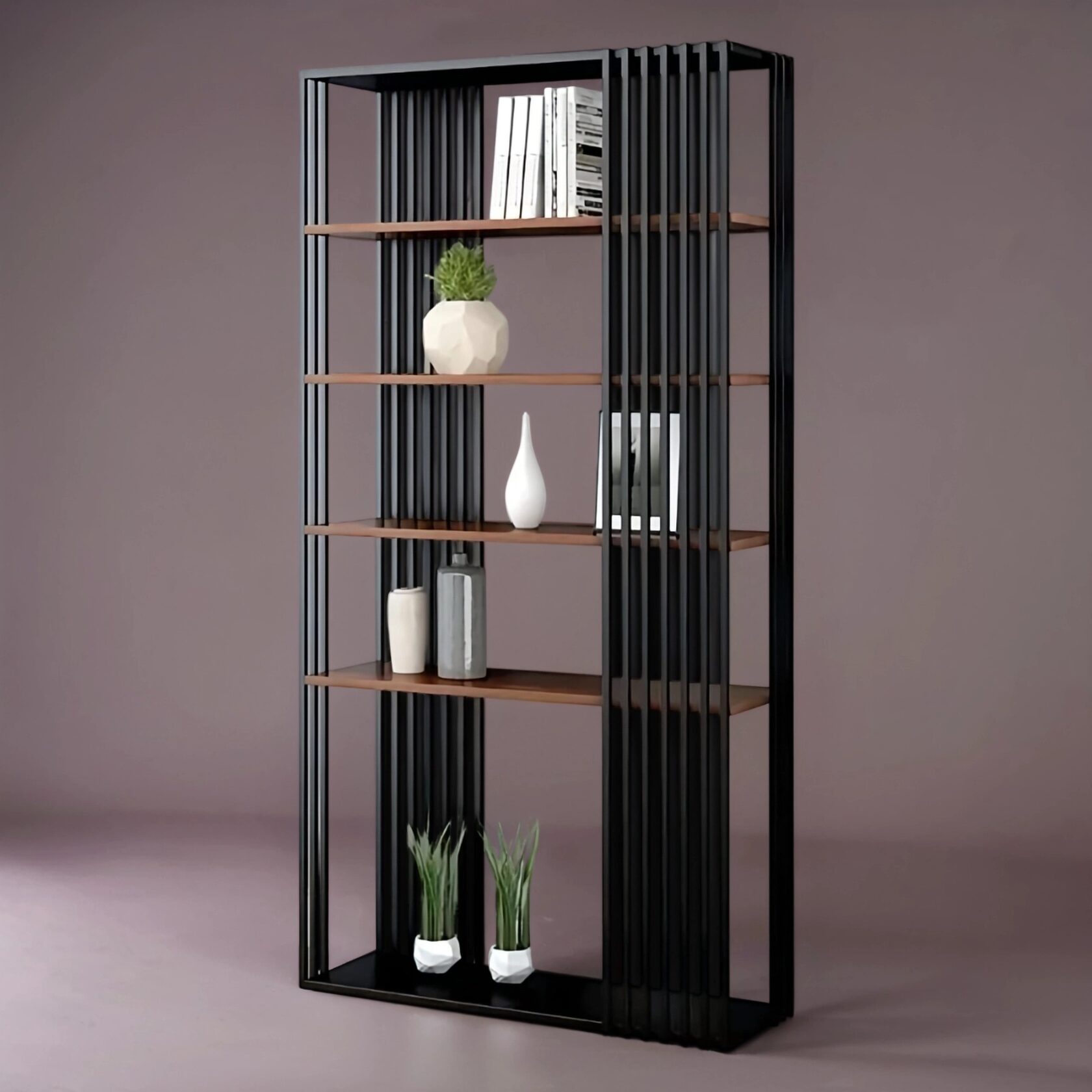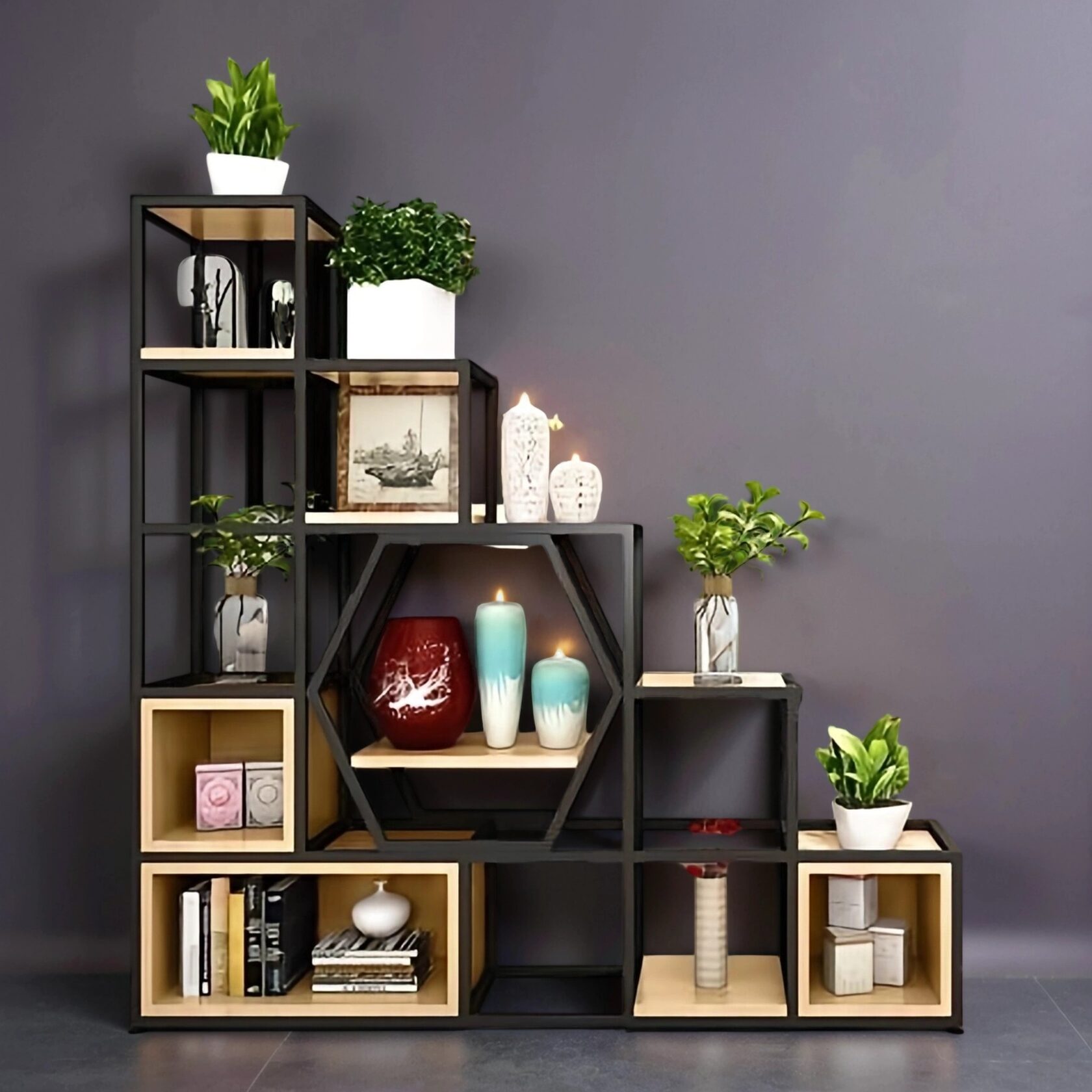 Стеллаж «Объем» изготовлен из металлического каркаса и натурального дерева. Детали качественно сварены и зачищены, швы визуально не просматриваются. Каркас покрыт порошковой краской повышенной прочности, устойчивой к внешнему воздействию. Детали тщательно зачищены и имеют гладкую поверхность.