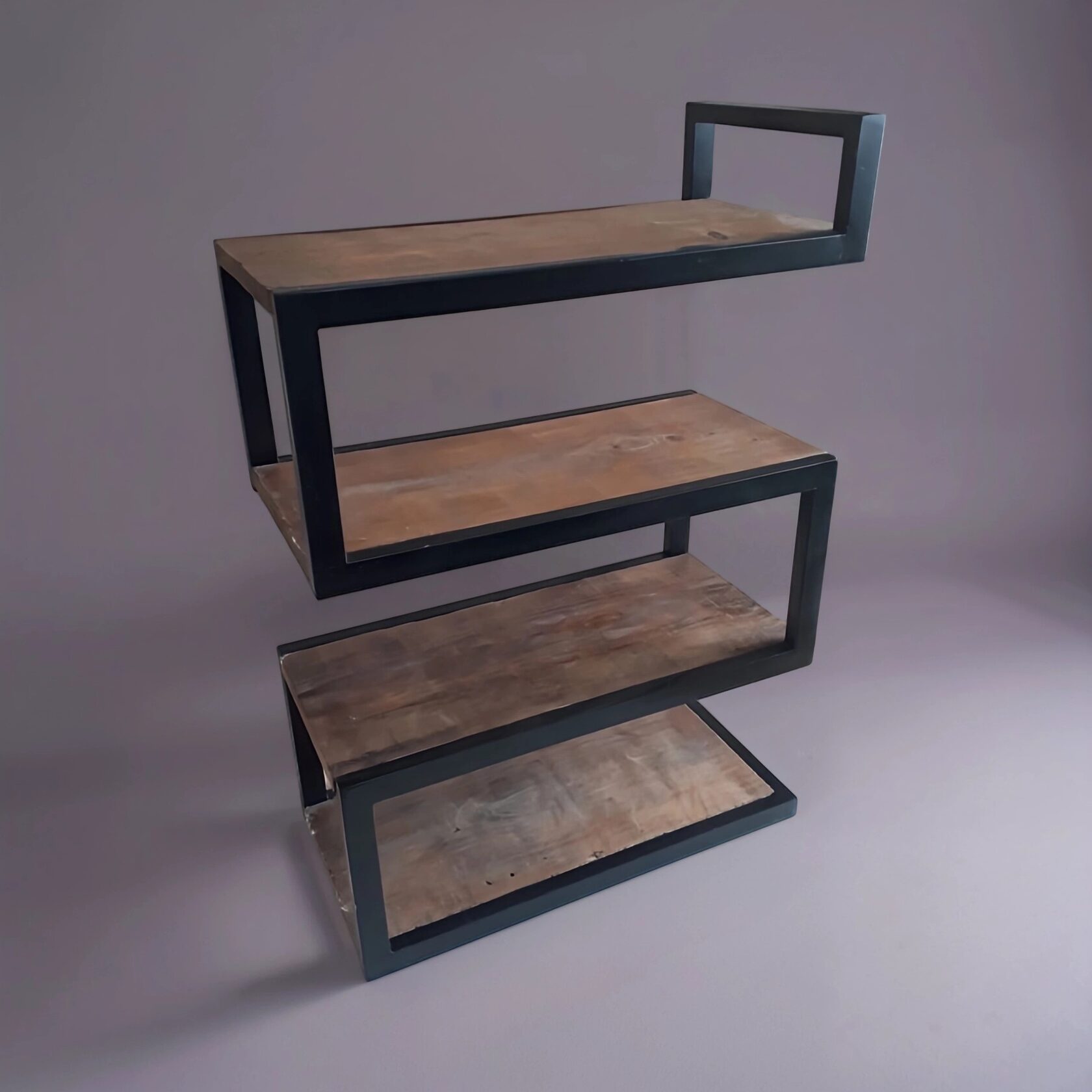 Стеллаж «Змейка» изготовлен из металлического каркаса и натурального дерева. Детали качественно сварены и зачищены, швы визуально не просматриваются. Каркас покрыт порошковой краской повышенной прочности, устойчивой к внешнему воздействию. Детали тщательно зачищены и имеют гладкую поверхность.