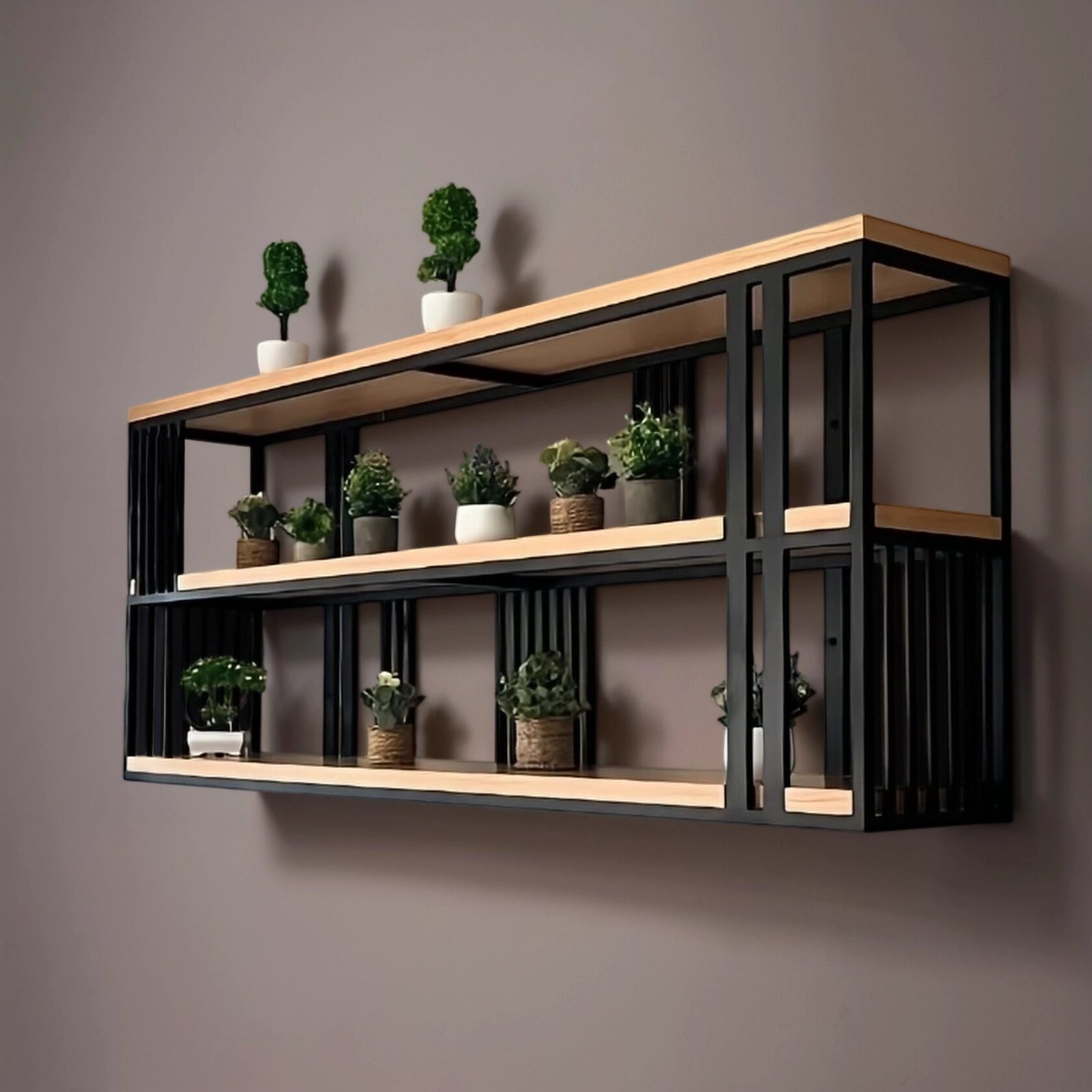 Полка «Каскад» изготовлена из металлического каркаса и натурального дерева. Детали качественно сварены и зачищены, швы визуально не просматриваются. Каркас покрыт порошковой краской повышенной прочности, устойчивой к внешнему воздействию. Детали тщательно зачищены и имеют гладкую поверхность.