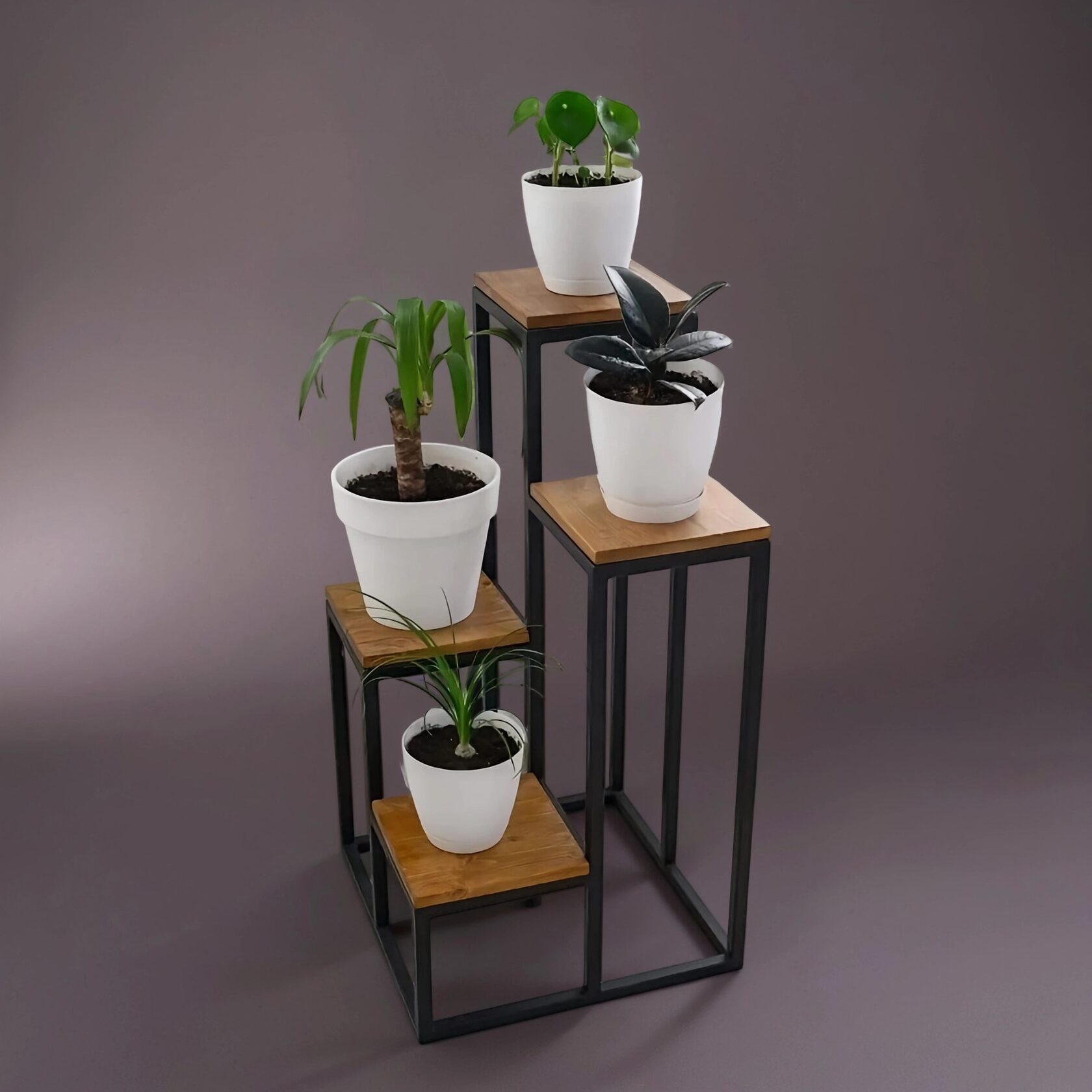 Стеллаж «Подставка» изготовлен из металлического каркаса и натурального дерева. Детали качественно сварены и зачищены, швы визуально не просматриваются. Каркас покрыт порошковой краской повышенной прочности, устойчивой к внешнему воздействию. Детали тщательно зачищены и имеют гладкую поверхность.