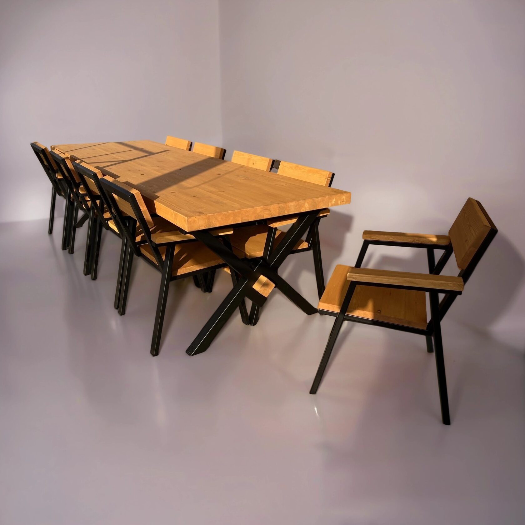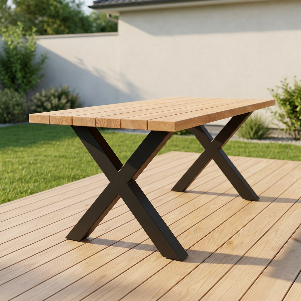 Стол «Гармония X» изготовлен из металлического каркаса и натурального дерева. Металлические детали качественно сварены и зачищены, швы визуально не просматриваются. Каркас покрыт порошковой краской повышенной прочности, устойчивой к внешнему воздействию. Дерево столешницы не имеет внешних повреждений, выбитых сучков и вмятин на лицевой поверхности. Столешница тщательно зачищена и имеет гладкую и ровную поверхность. Стол имеет жесткую неподвижную конструкцию.
