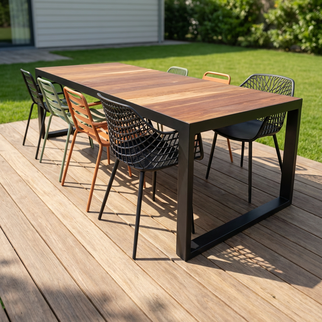Варианты исполнения Дерево — сосна, ель, лиственница, дуб, ясень. Покрытие дерева — тиковое масло, террасное масло, лак. Производитель по согласованию. Покрытие металла каркаса — порошковая краска любого цвета по RAL.