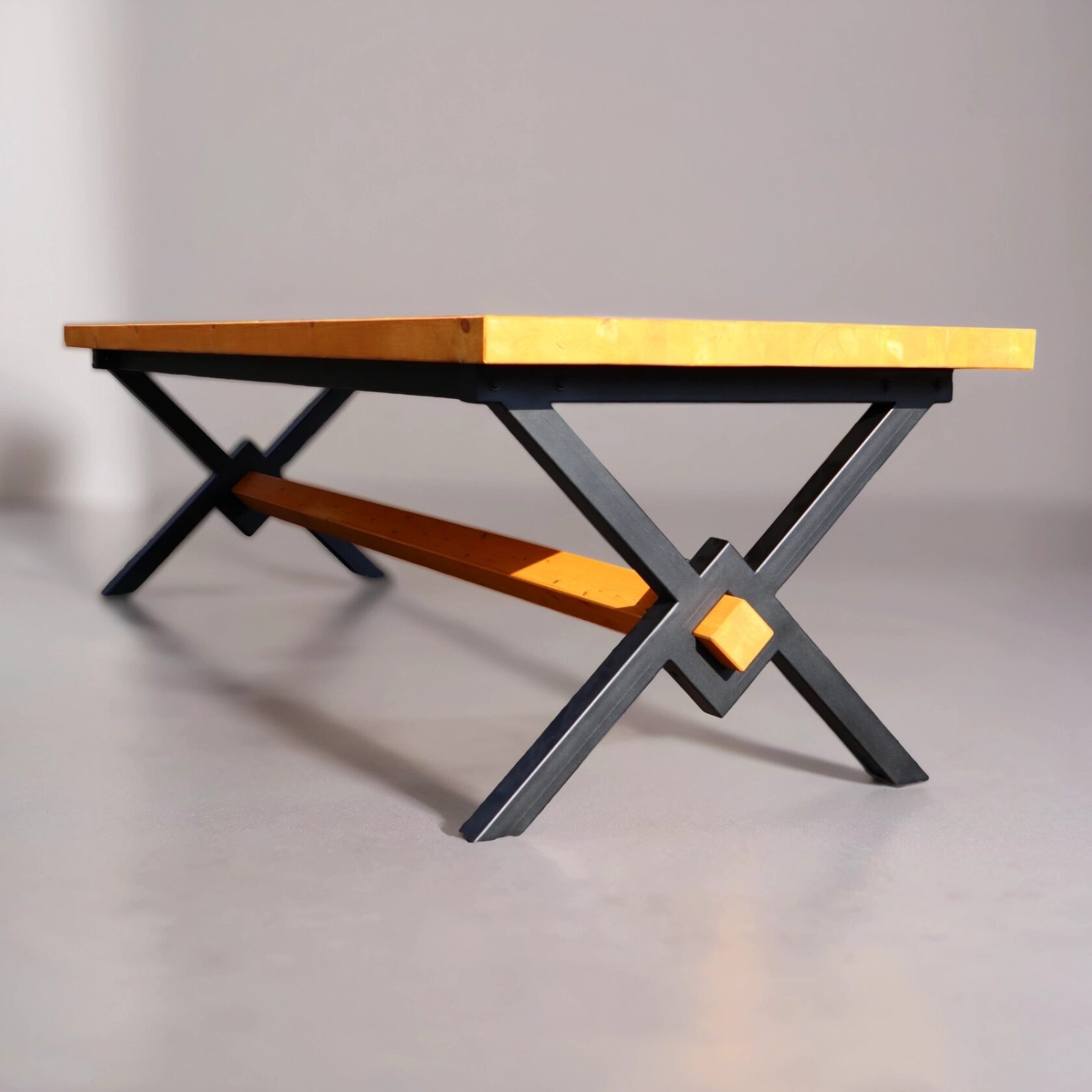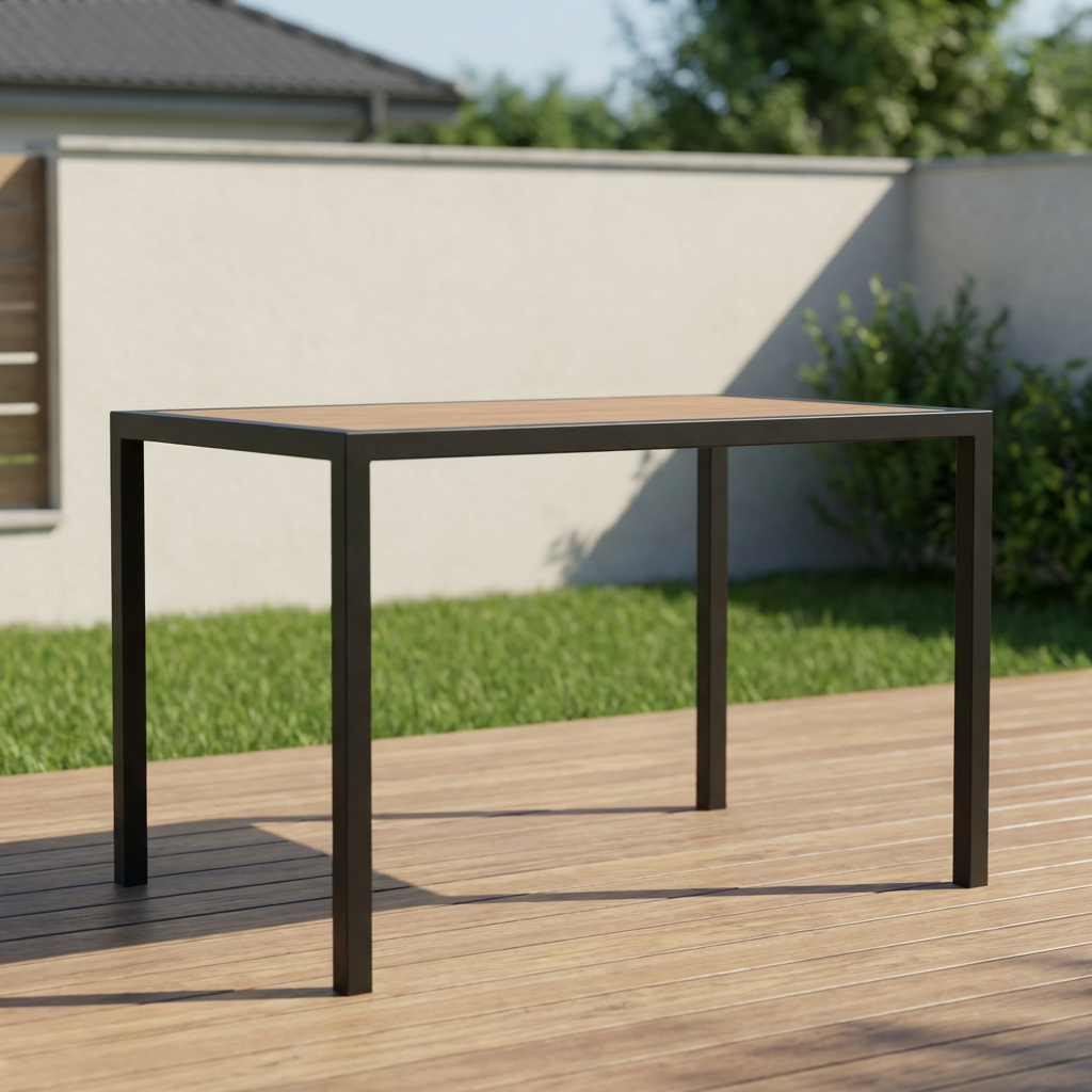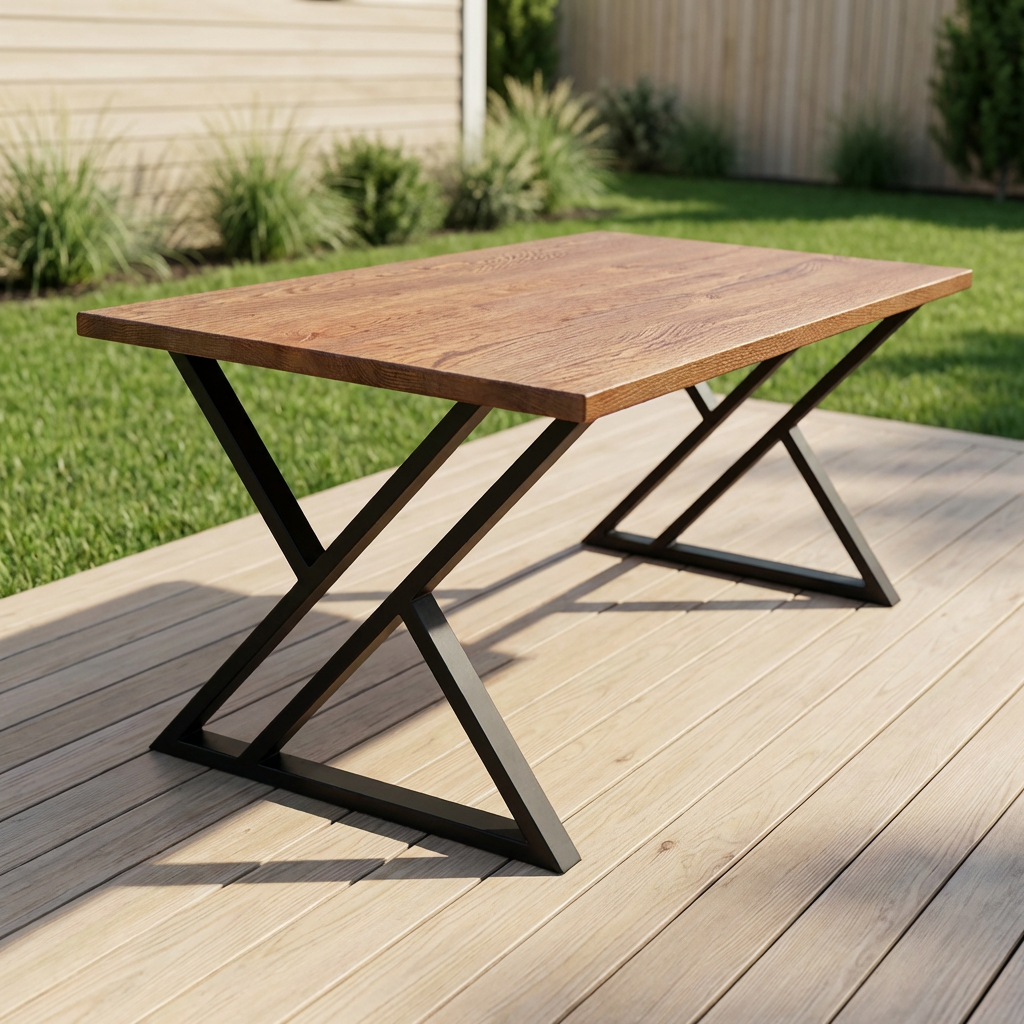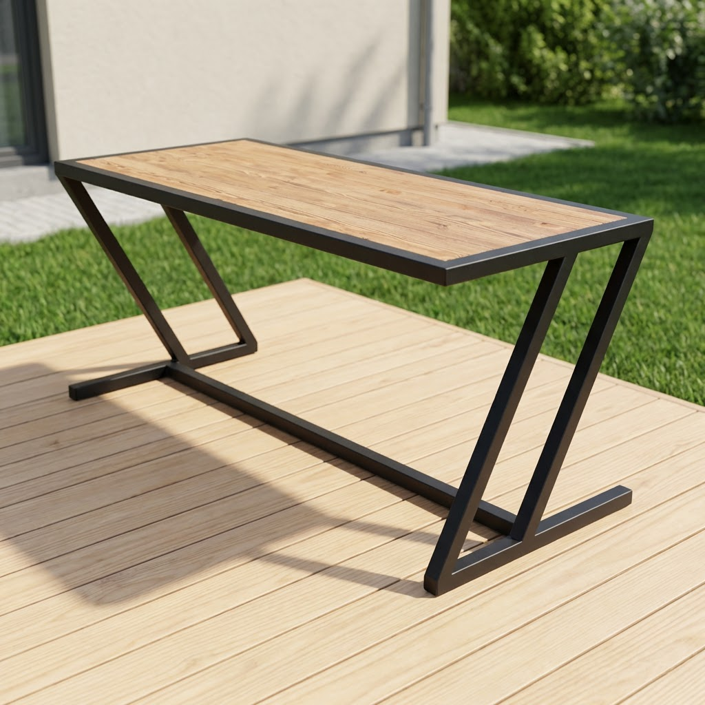 Стол «Z-Z» изготовлен из металлического каркаса и натурального дерева. Металлические детали качественно сварены и зачищены, швы визуально не просматриваются. Каркас покрыт порошковой краской повышенной прочности, устойчивой к внешнему воздействию. Дерево столешницы не имеет внешних повреждений, выбитых сучков и вмятин на лицевой поверхности. Столешница тщательно зачищена и имеет гладкую и ровную поверхность. Стол имеет жесткую неподвижную конструкцию.