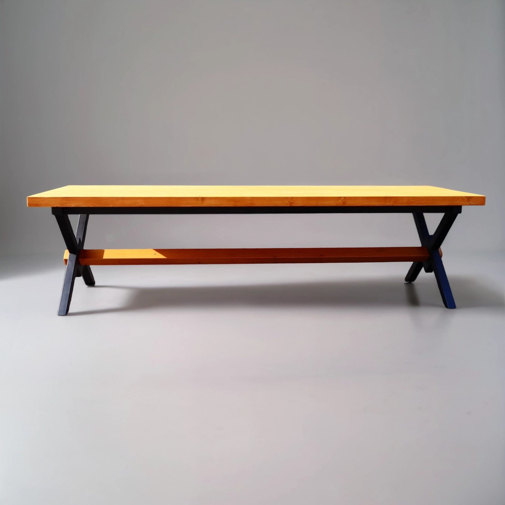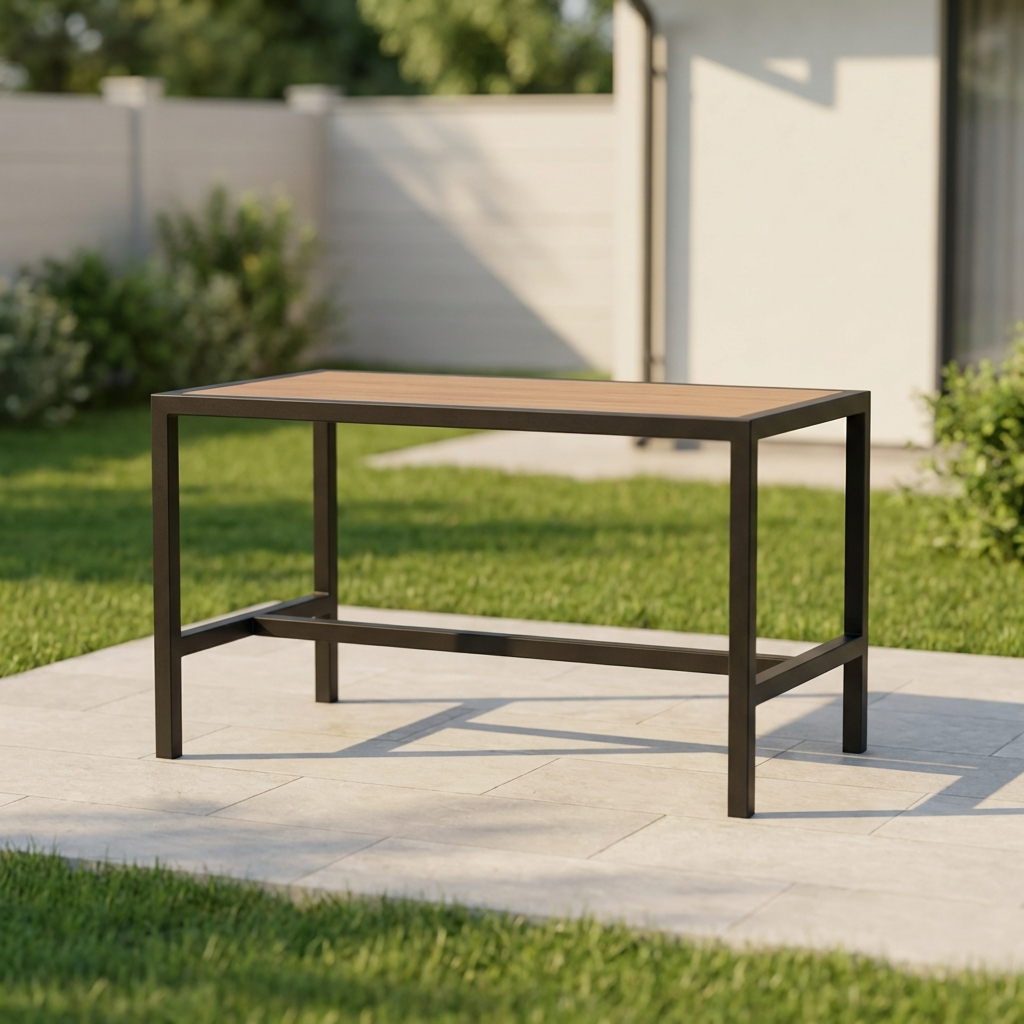 Стол «Линия» изготовлен из металлического каркаса и натурального дерева. Металлические детали качественно сварены и зачищены, швы визуально не просматриваются. Каркас покрыт порошковой краской повышенной прочности, устойчивой к внешнему воздействию. Дерево столешницы не имеет внешних повреждений, выбитых сучков и вмятин на лицевой поверхности. Столешница тщательно зачищена и имеет гладкую и ровную поверхность. Стол имеет жесткую неподвижную конструкцию.