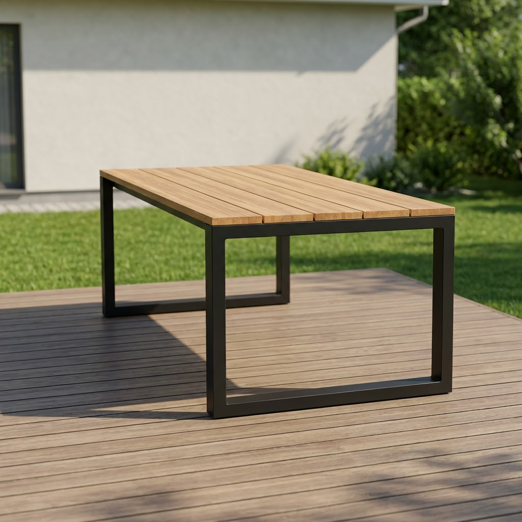 Стол «Викинг» изготовлен из металлического каркаса и натурального дерева. Металлические детали качественно сварены и зачищены, швы визуально не просматриваются. Каркас покрыт порошковой краской повышенной прочности, устойчивой к внешнему воздействию. Дерево столешницы не имеет внешних повреждений, выбитых сучков и вмятин на лицевой поверхности. Столешница тщательно зачищена и имеет гладкую и ровную поверхность. Стол имеет жесткую неподвижную конструкцию.