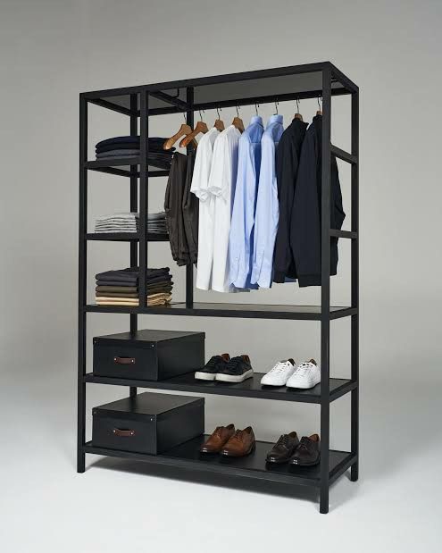 Гардеробная «Стеллаж» изготовлена из металлического каркаса и натурального дерева. Детали качественно сварены и зачищены, швы визуально не просматриваются. Каркас покрыт порошковой краской повышенной прочности, устойчивой к внешнему воздействию. Детали тщательно зачищены и имеют гладкую поверхность.