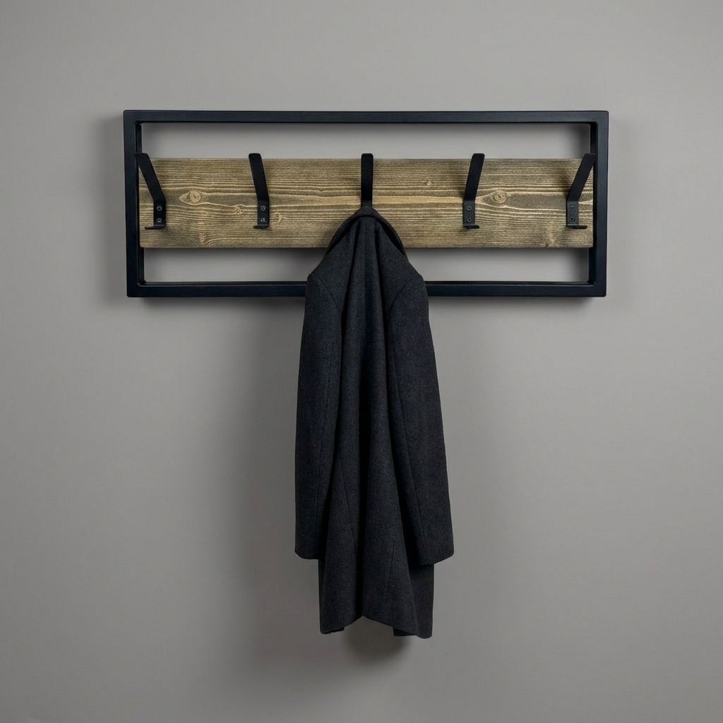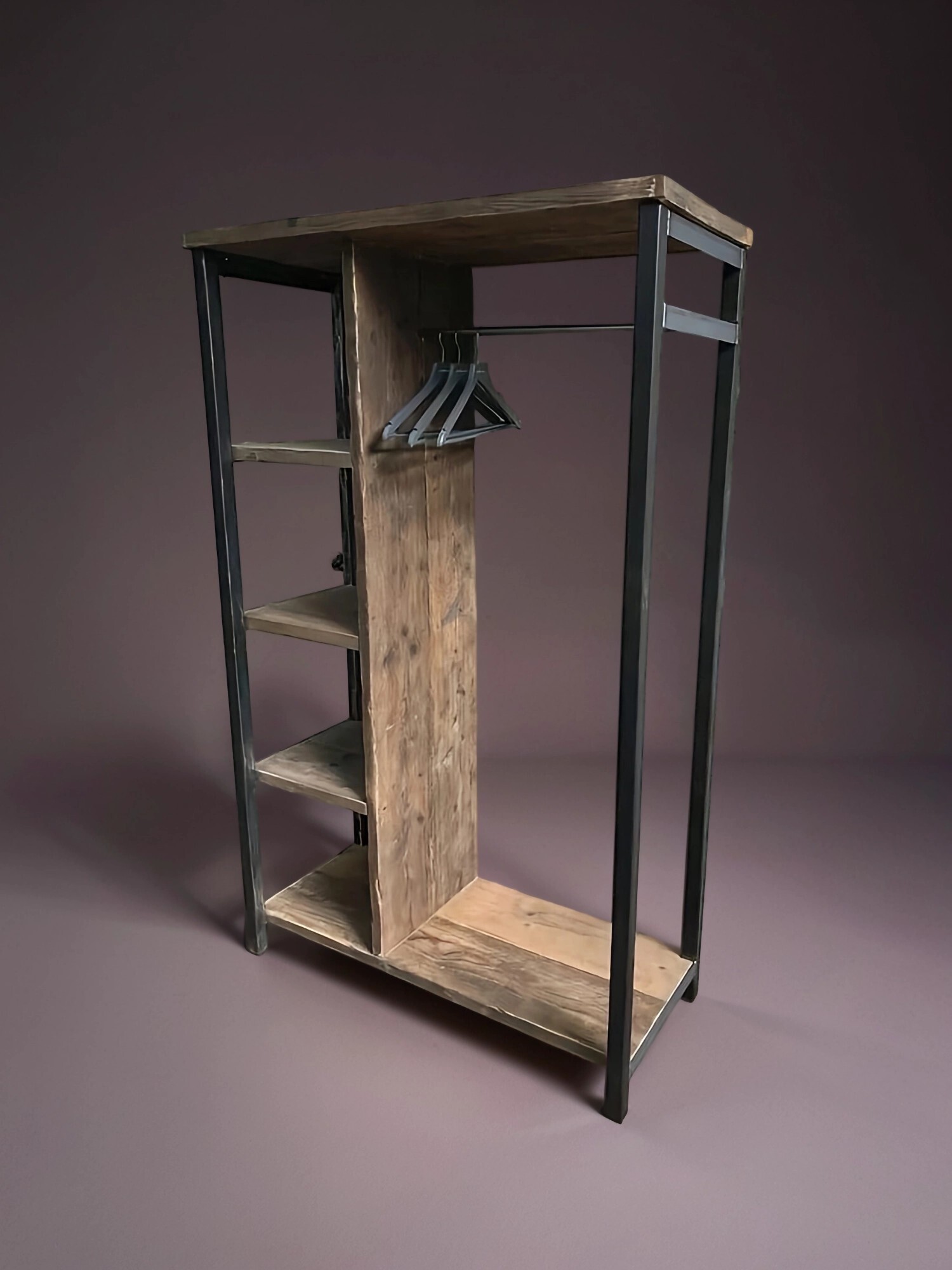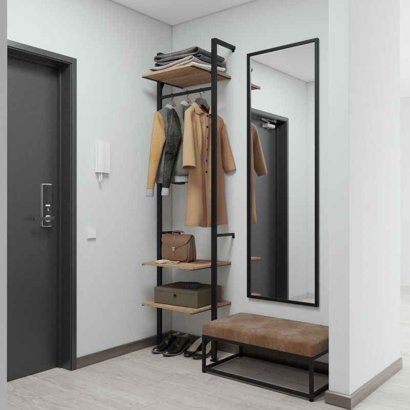 Гардеробная «Нордис» изготовлена из металлического каркаса и натурального дерева. Детали качественно сварены и зачищены, швы визуально не просматриваются. Каркас покрыт порошковой краской повышенной прочности, устойчивой к внешнему воздействию. Детали тщательно зачищены и имеют гладкую поверхность.