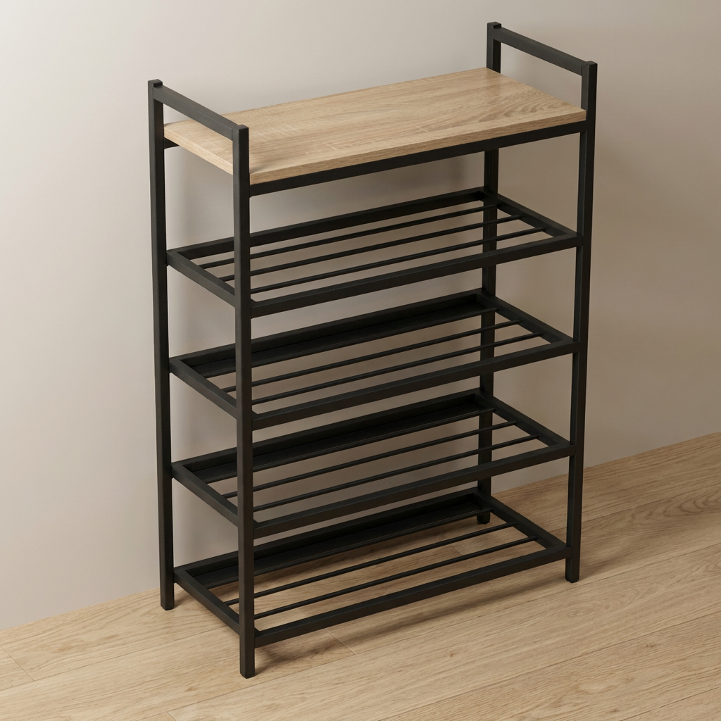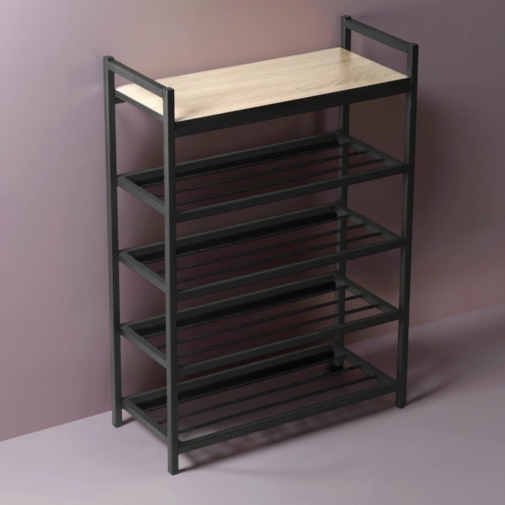 Обувница «Этаж» изготовлена из металлического каркаса и натурального дерева. Детали качественно сварены и зачищены, швы визуально не просматриваются. Каркас покрыт порошковой краской повышенной прочности, устойчивой к внешнему воздействию. Детали тщательно зачищены и имеют гладкую поверхность.